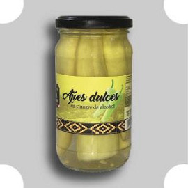 Ingredientes: Ají dulce, vinagre de alcohol, sal. Cont. Neto: 330g – Cont. Esc.: 150g Pack: 12 unidades